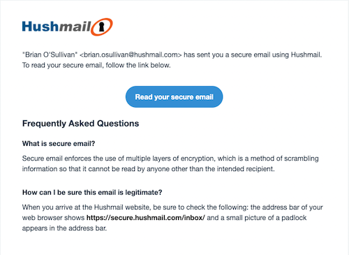 I use Hushmail to send secure messages. Below is an example of the email you will receive when I reply. Please click on “Read your secure email” and create a password to read the secure email.